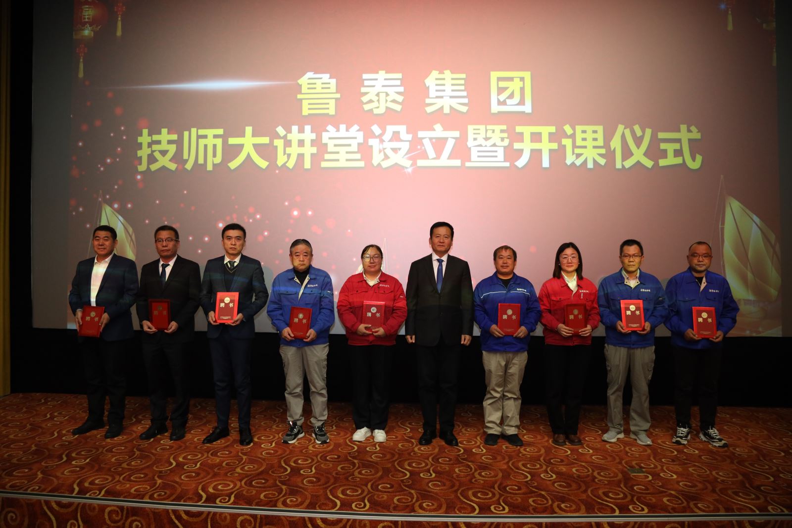 仪式上,公司副总裁张战旗宣读《关于设立技师大讲堂及聘任讲师的决定》。决定聘任吕文泉等10人为鲁泰集团技师大讲堂中级讲师;聘任郭珊珊等10人为鲁泰集团技师大讲堂初级讲师。