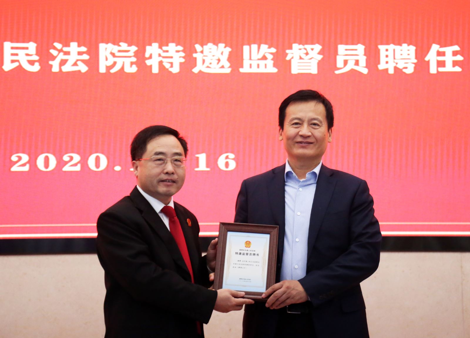市法院相关负责人介绍了今年以来法院整体情况,宣读了《淄博市中级人民法院特邀监督员选任实施办法》和名单。市法院党组书记、院长梁久军为包括刘子斌董事长在内的45名特邀监督员颁发聘书。
