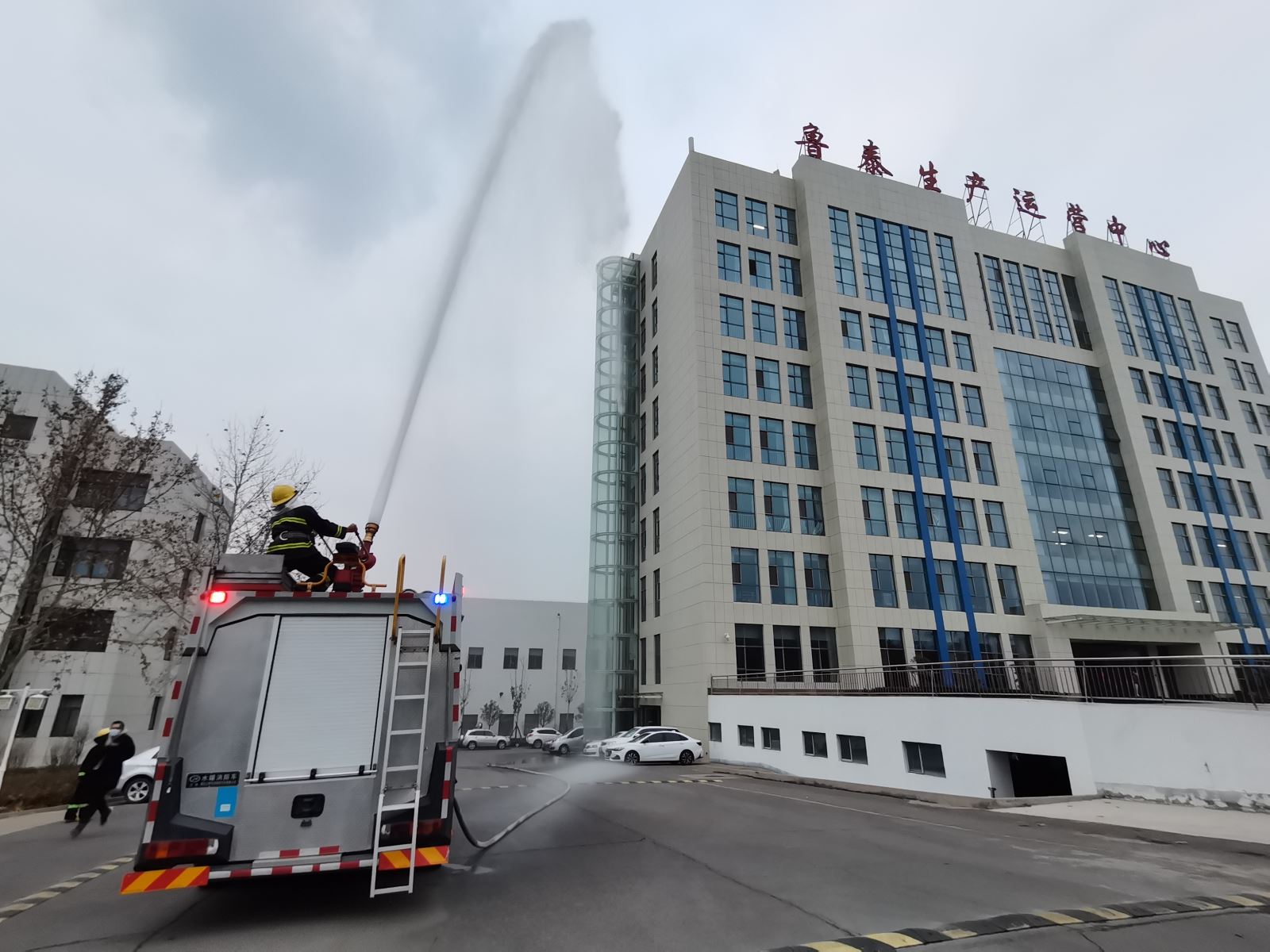 在119消防安全宣传月期间,各部门分别进行了疏散逃生及消防应急演练。随着演习铃声响起,撤离人员湿毛巾捂鼻口,弯腰快速由安全通道撤离至安全地带,消防车接到报警指令后第一时间赶到现场,消防人员梯次出动迅速控制了“险情”。