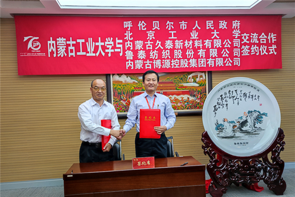 在仪式上,刘子斌董事长与姚德校长签署合作协议,公司在内蒙古工业大学轻工与纺织学院设立“鲁泰纺织奖学金”,用于奖励品学兼优的学生,希望莘莘学子用才华和学识实现自身的社会价值和人生价值,时刻准备着为祖国的现代化建设,为中华民族的伟大复兴贡献力量。