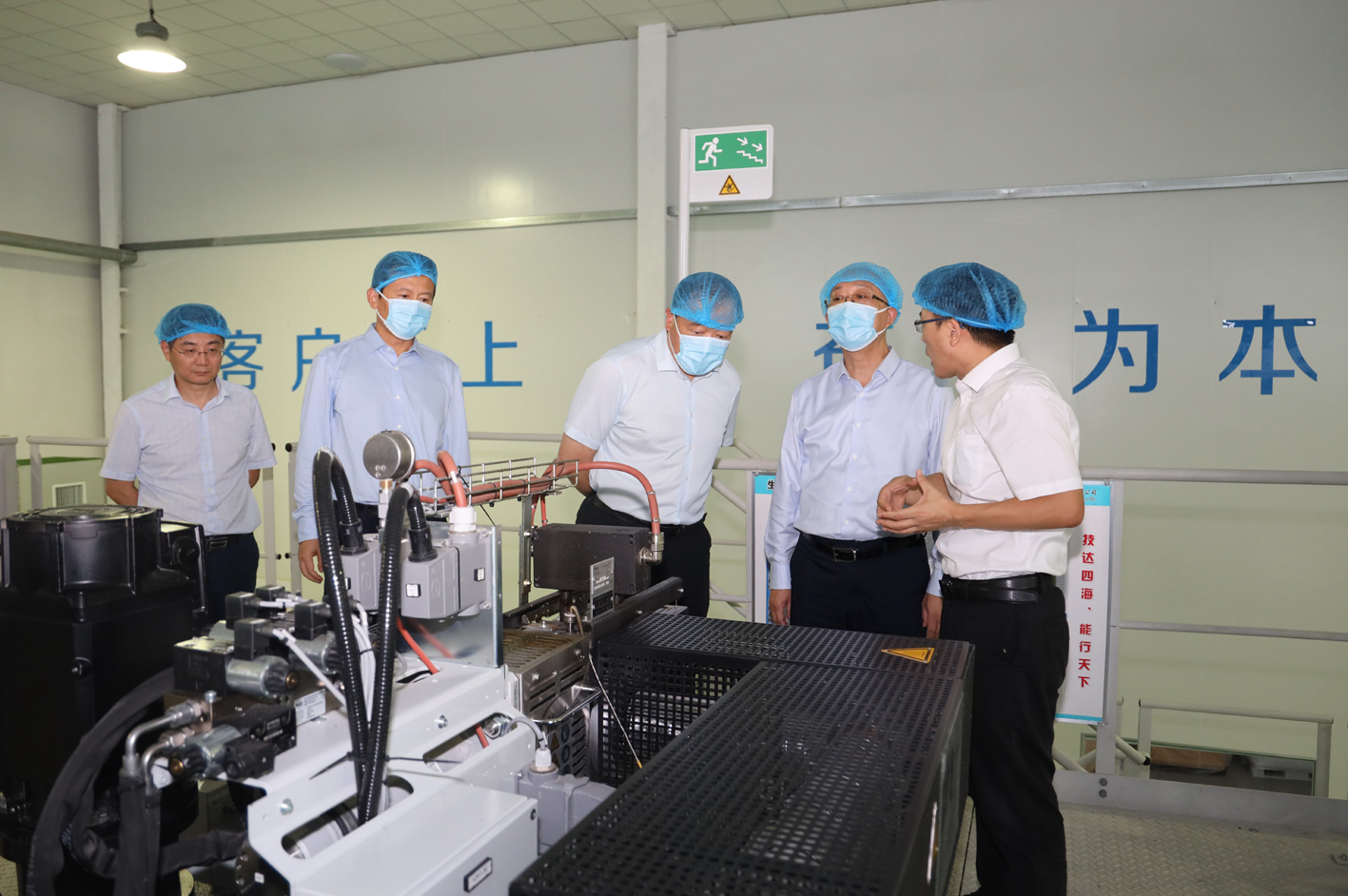 座谈会前,刘子斌董事长陪同调研组一行参观了希瑞新材生产线现场,了解了设备性能、生产流程等方面的情况。