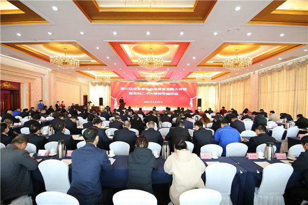 3月25日,淄川区企业家协会高质量发展大讲堂暨党的二十大精神专题讲座在般阳山庄举行。区政府副区长冯明,区企业家协会会长、公司党委书记、董事长、总裁刘子斌等领导,区民营企业负责人,公司相关部门负责人到场听讲。