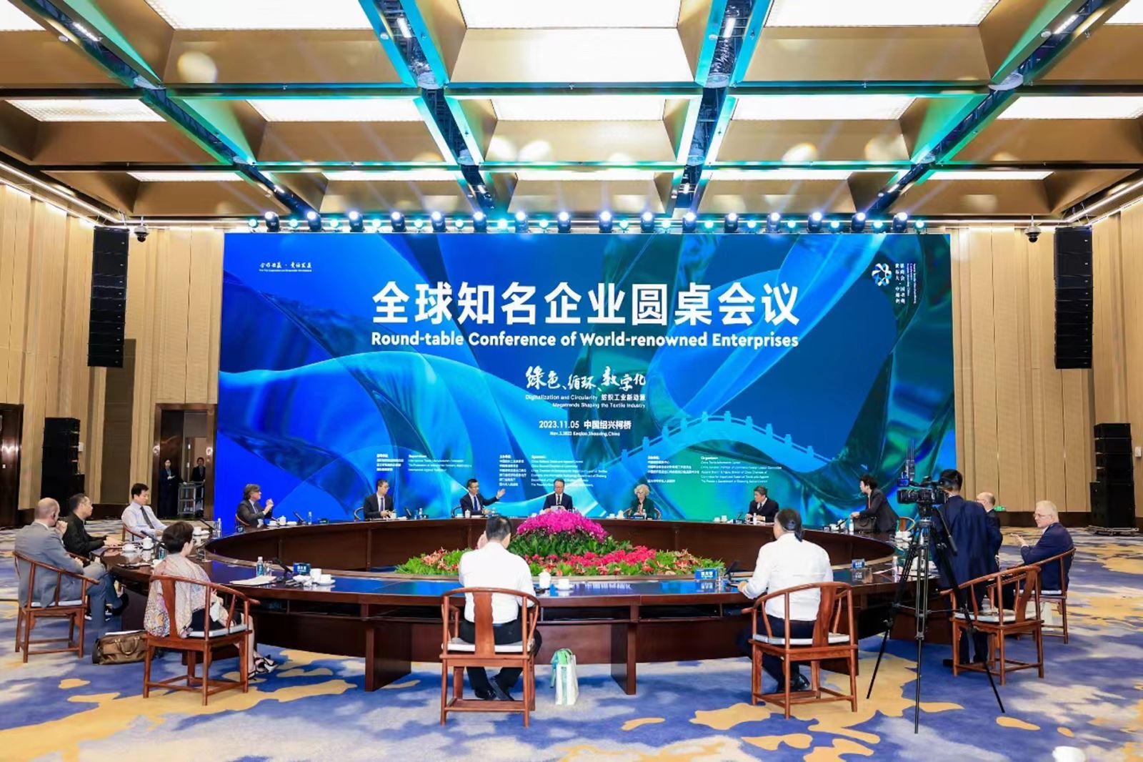 11月5日,2023国际纺织制造商联合会中国绍兴柯桥大会、2023第六届世界布商大会在绍兴柯桥启幕,全球纺织行业两大高端国际盛会首度联合举办。作为每年世界布商大会的重磅构成,全球知名企业圆桌会议于同日举行,围绕“绿色、循环、数字化——纺织工业新动源”主题,集思广益、凝聚共识,共同探讨产业在全新发展时期走向高端化、智能化、绿色化、融合化发展的未来之路。