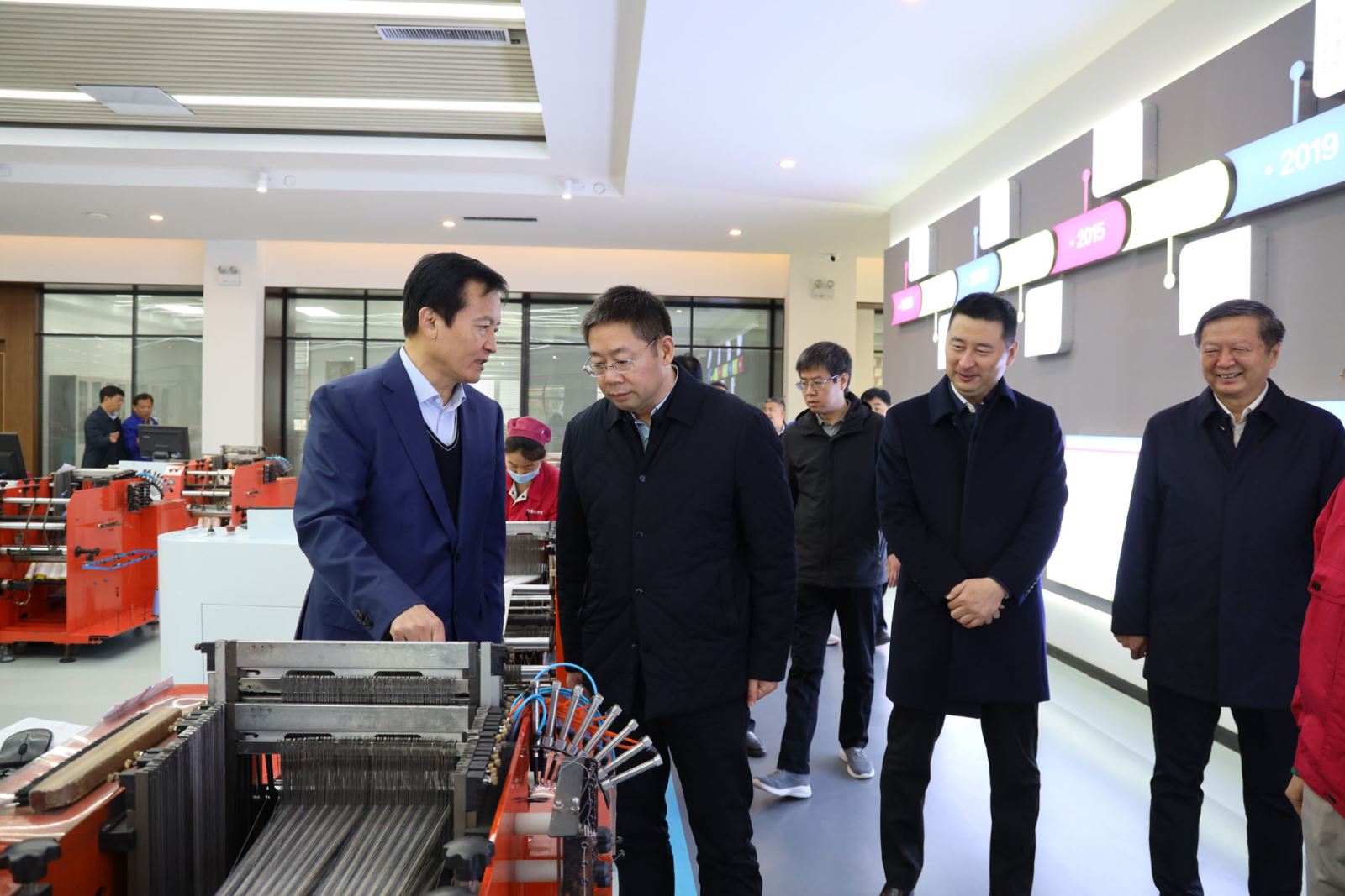 刘子斌董事长向蒋牧宸主任详细介绍了公司的生产运营、再生水利用、半缸染色等节水工艺相关情况。蒋牧宸说,公司城市污水处理、中水回用等工作,充分彰显了企业社会责任感,为工业企业用水、节水作出了示范。