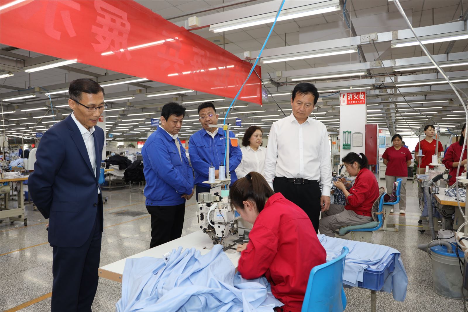 4月12日,公司党委书记、董事长、总裁刘子斌,工会主席董士冰来到服装产品线技能擂台赛和织造生产部技能对抗赛现场,观看员工的技术比赛并查看弘扬工匠精神活动开展情况。