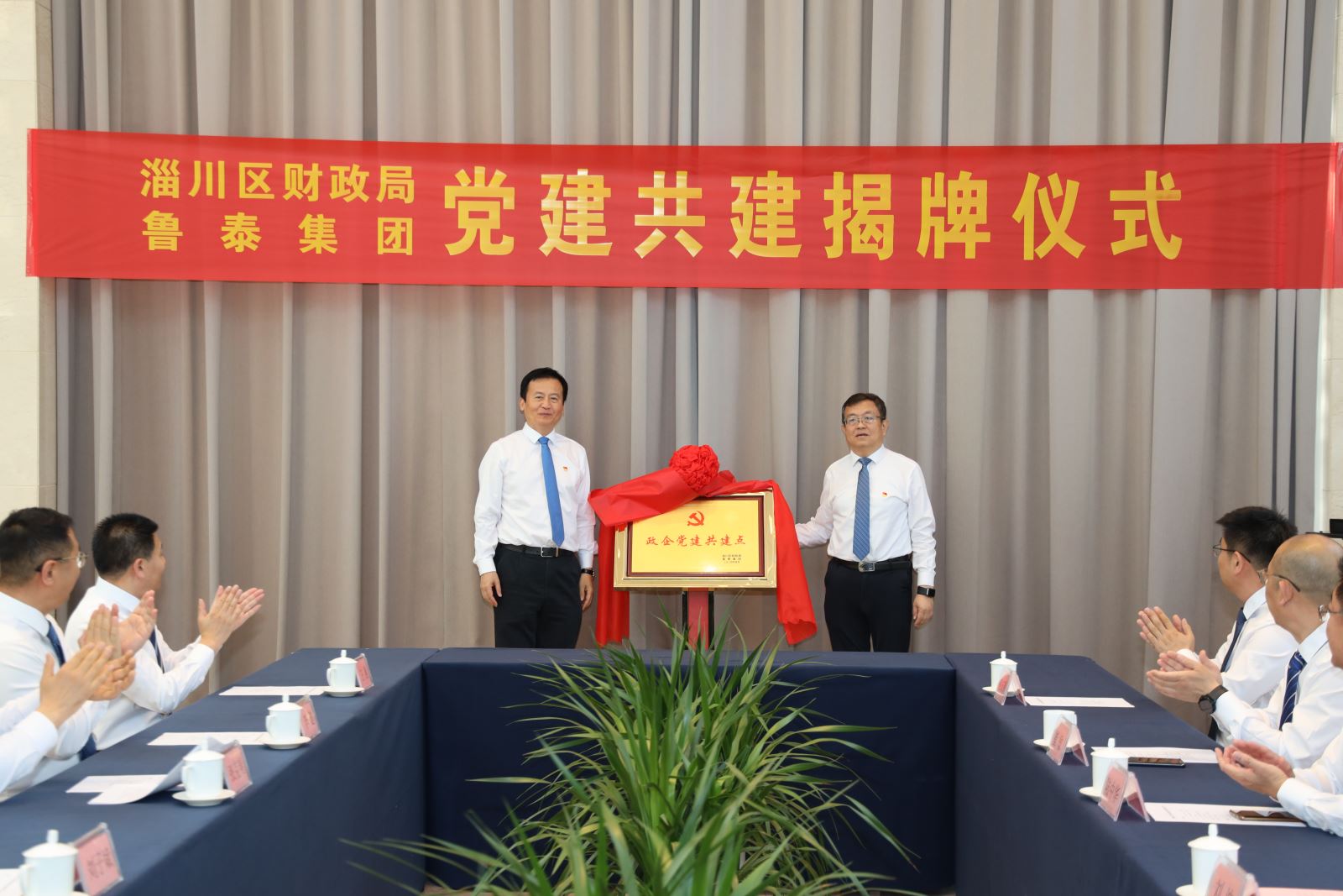 4月19日,区财政局与鲁泰集团党建共建揭牌仪式在般阳山庄举行。区财政局党组书记、局长刘波,公司党委书记、董事长、总裁刘子斌共同为政企党建共建点揭牌。