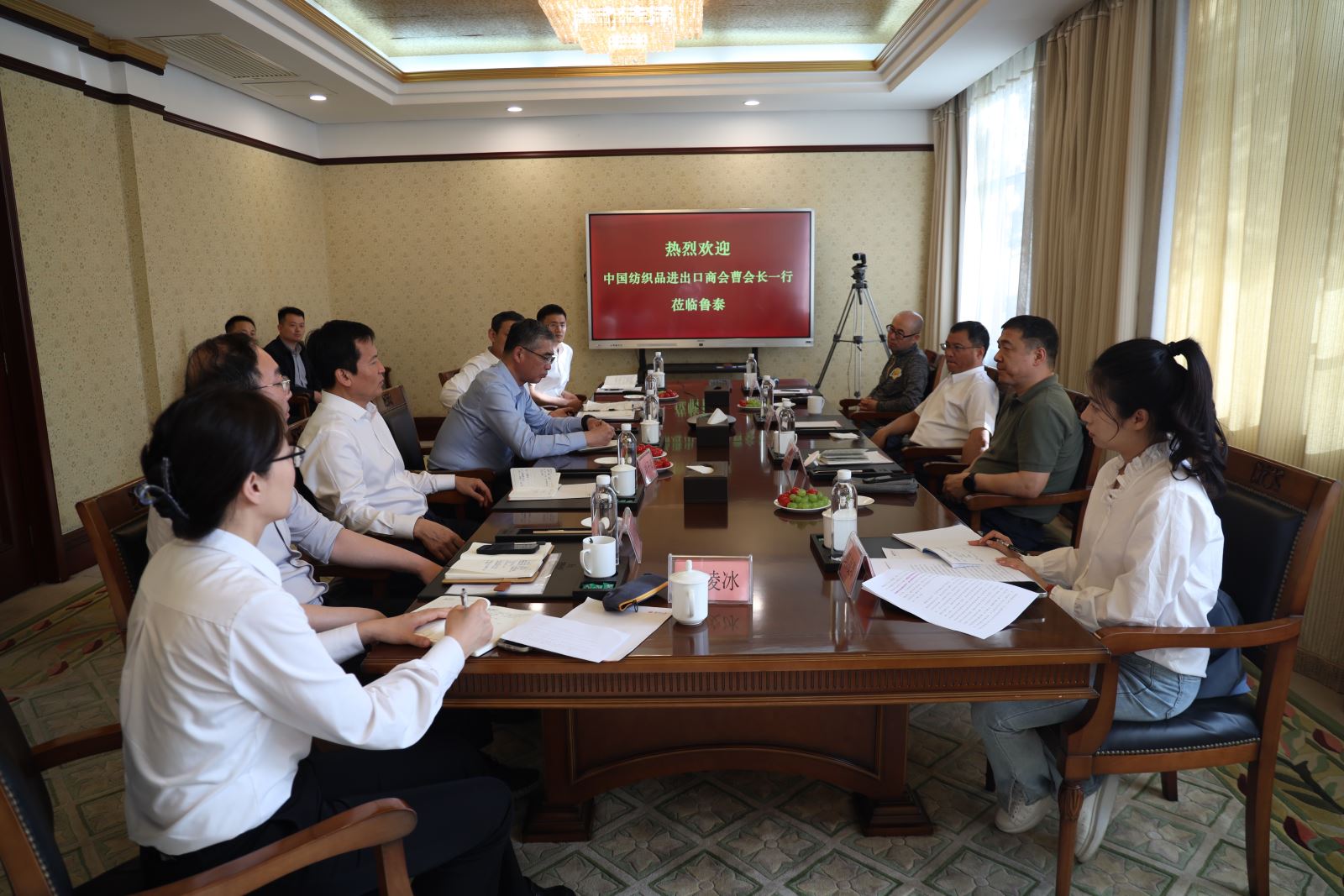 4月26日,中国纺织品进出口商会会长曹甲昌一行来公司调研。市委常委、统战部部长盖卫星,公司党委书记、董事长、总裁刘子斌,总会计师张克明等领导出席座谈会。座谈会上,刘子斌董事长详细介绍了公司生产经营、进出口业务、战略规划等方面的情况。与会领导就企业在当前国际市场经济形势下如何谋求发展进行了交流沟通。