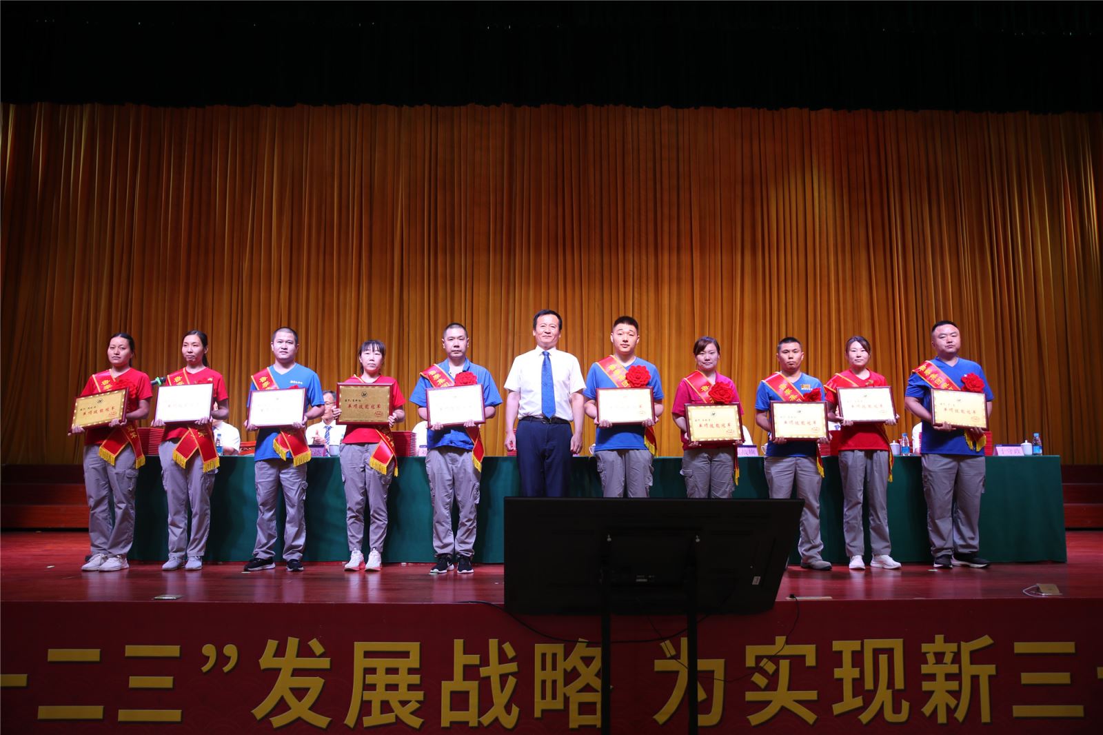刘子斌书记分别为单项技能冠军周配花、黄亭、王仕栋、李羿锐、李森、魏代超、吕艳琴、肖洪江、陈翠翠、于龙颁发荣誉奖牌。技术标兵代表分别上台领奖。