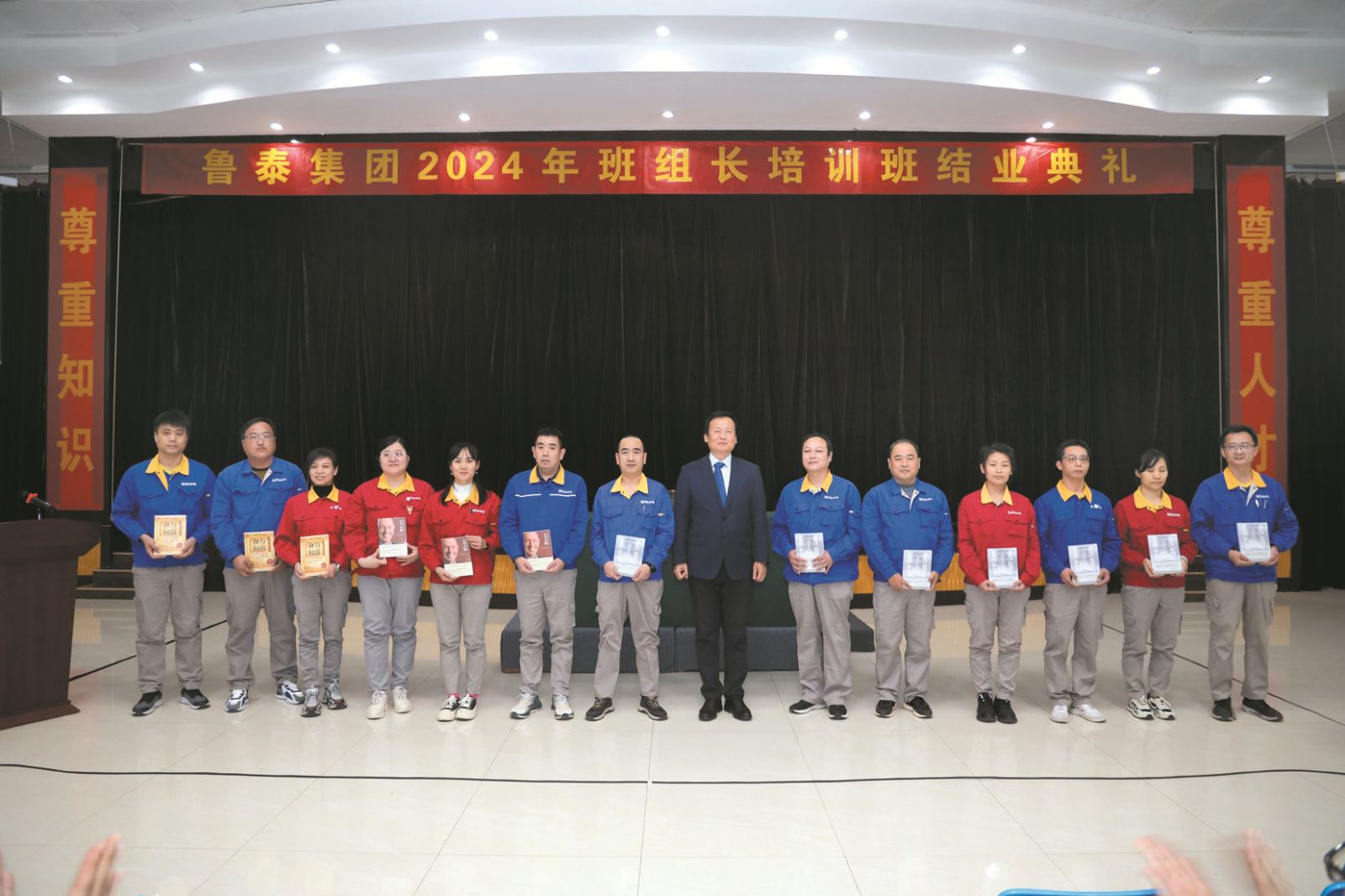 12月3日,6日,鲁泰集团2024年班组长、工段长培训班结业典礼分别在总公司俱乐部、般阳山庄举行,公司党委书记、董事长、总裁刘子斌出席并为优秀学员颁发奖品,各部门参训班组长、工段长参加结业典礼。