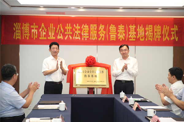8月27日,淄博市企业公共法律服务(鲁泰)基地揭牌仪式在公司般阳山庄举行,市司法局党组书记、局长聂玉彬,市司法局党组成员、副局长王彬,区委书记田兵兵,区委常委、政法委书记高方,区委常委、区委办公室主任刘鸿智,副区长、区公安分局局长孙鲁岷,公司党委书记、董事长、总裁刘子斌等领导出席仪式。